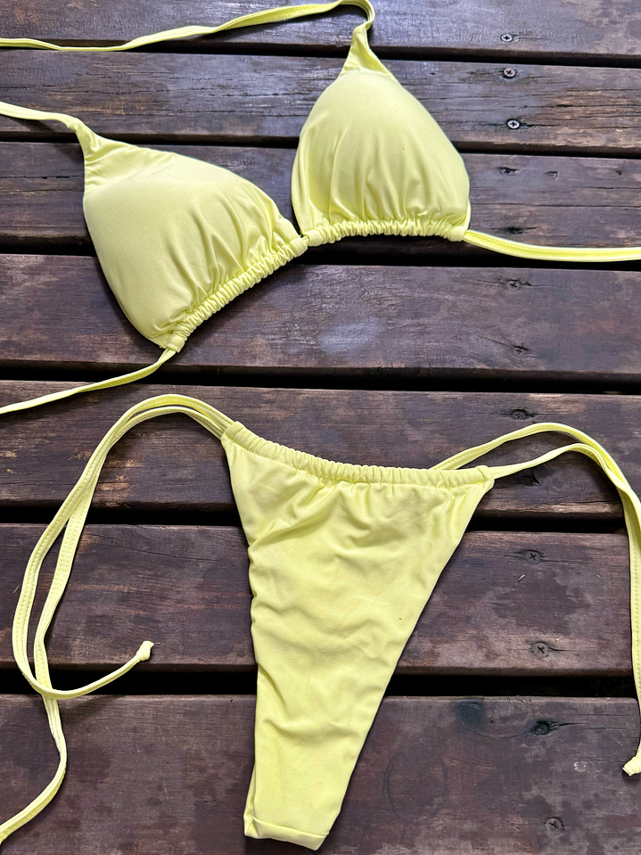 Vestido de baño ideal para broncearse dada su horma pequeña dando mayor exposición al sol. El top posee copas de espuma removibles. Amarre en cuello , espalda y caderas